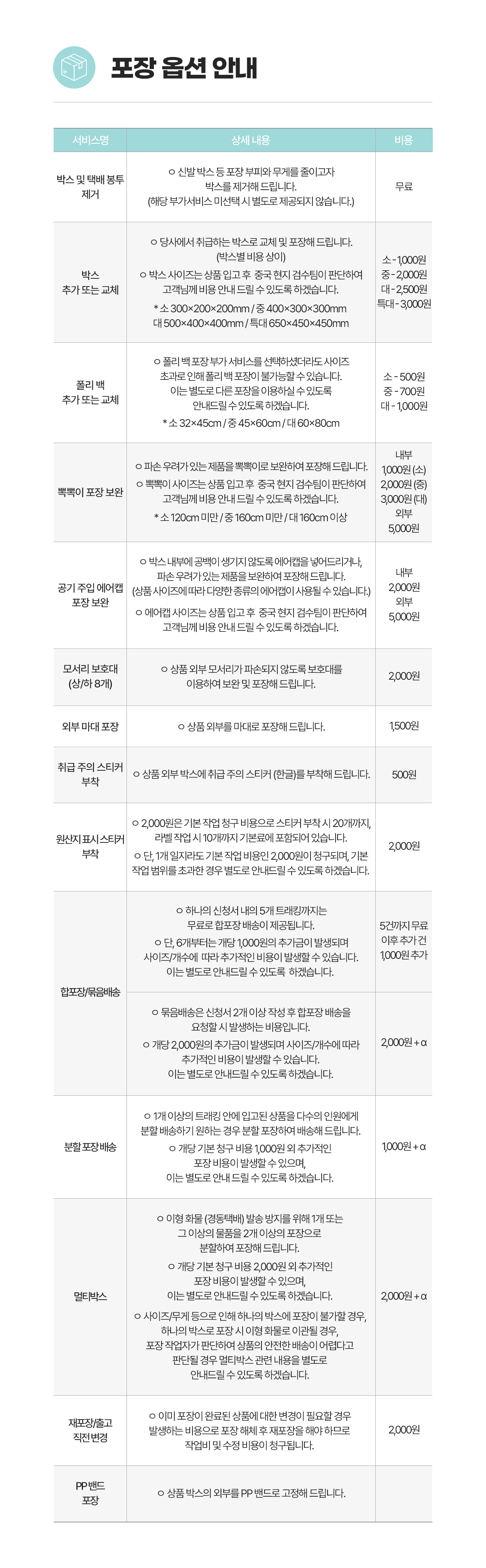 포장옵션 안내